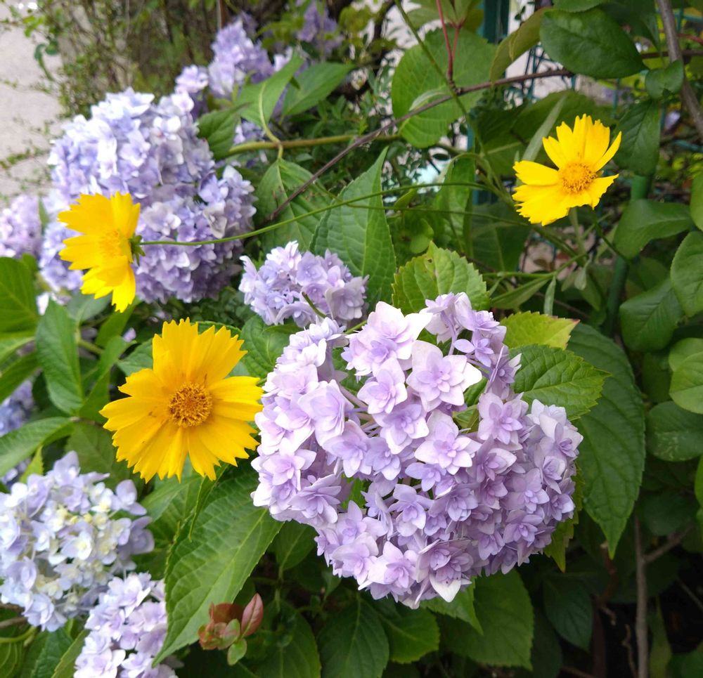 紫陽花といつの間にか共演してる特定外来生物オオキンケイギク🙀