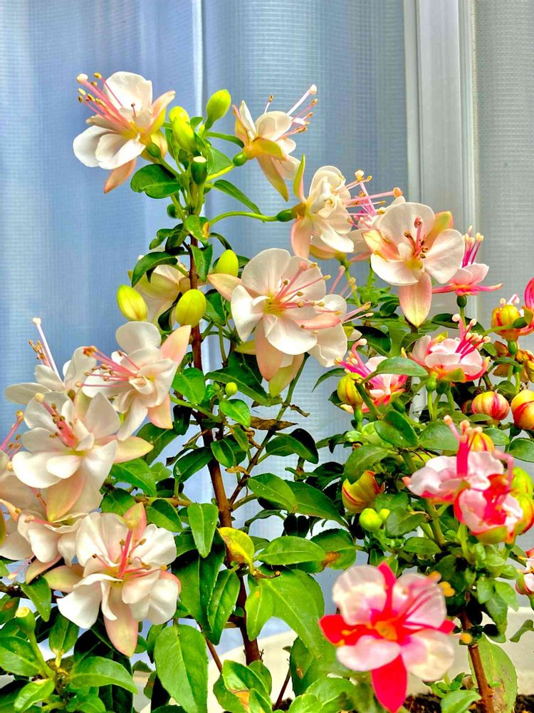 フクシアの花はうつむき加減に咲くのに上向きで咲いているなんて珍しいですよね🌸大好きなお花なので見られて嬉しいです💖