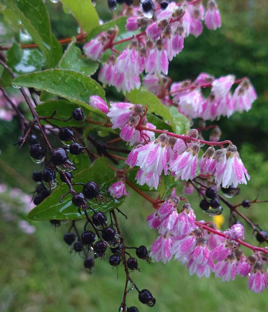八重のウツギで外側が紫紅色を帯び、内側は白色🤍🩷キレイ
