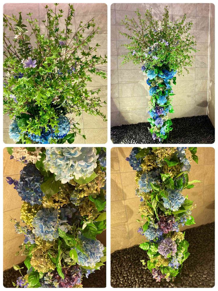 さんへ 花は薬品加工されたプリザーブドフラワーで茎はプラスチックのようです。展示は約1ヶ月間。