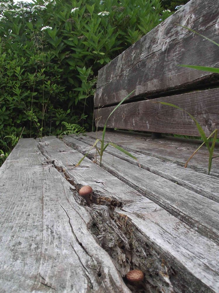 キノコが生えたベンチ…