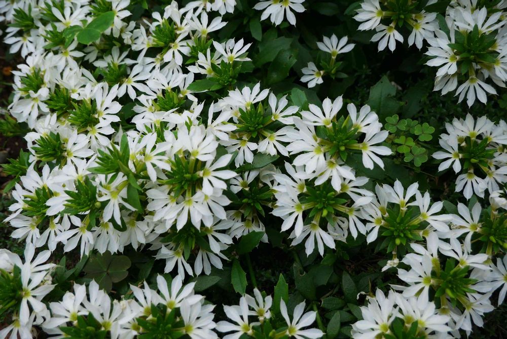白い花びらに真ん中が緑!変わったお花なんですね〜 お庭にこんなに咲いていて素敵〜!!