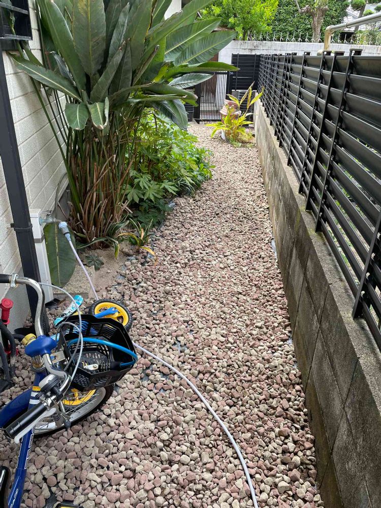 砂利は篩い土とゴミを捨て駐車場で洗い通路に戻しました。