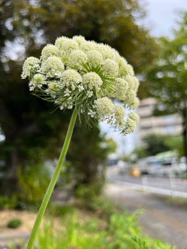図書館の駐車場のはずれでポツンと咲いていた。これはノラニンジン?(レースフラワーにも似ている)間違ってたら教えてください。