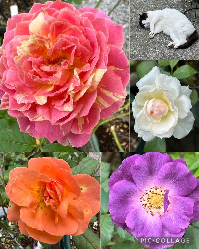 今日の2番花さんたち 暑くてお花も小さくなっています 猫も暑そう