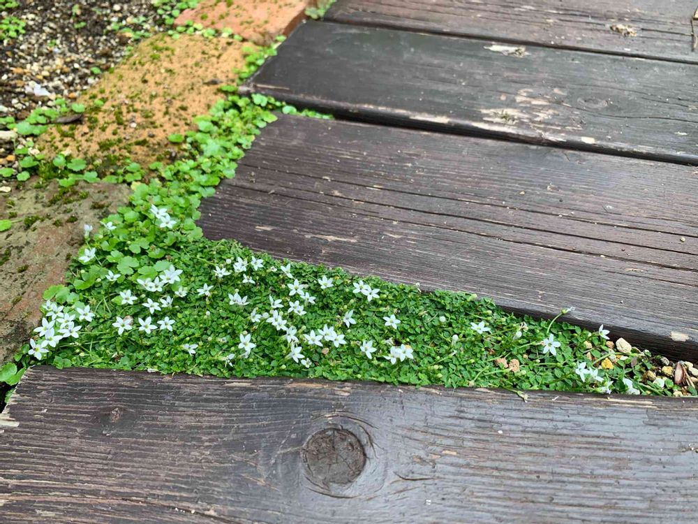 うちはディコンドラを通路に植えています。踏んづけても強い💪