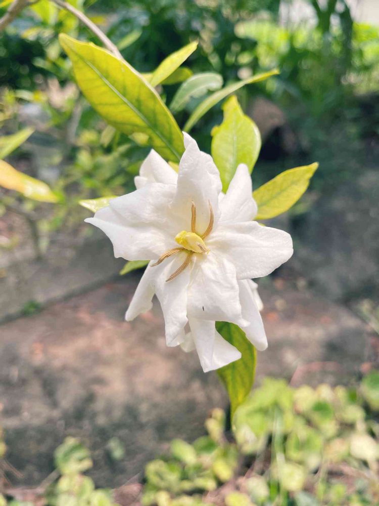 葉が黄色く、木もひょろっとしてるなか花を3つほど付けました