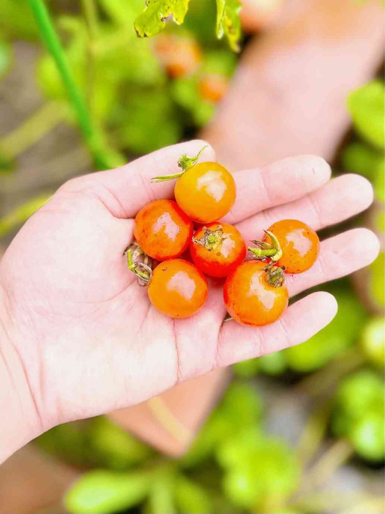 今朝、ミニトマトをいくつか収穫しました。赤くなっていてもまだ小さいミニトマトもまだありました。