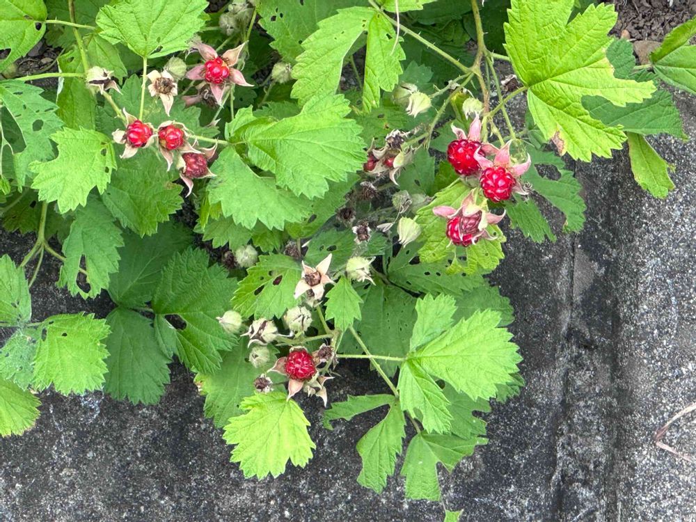 「ナワシロイチゴ」の果実が出来ています。ちと小さくて酸っぱいんですけど味は美味しいと思う😋