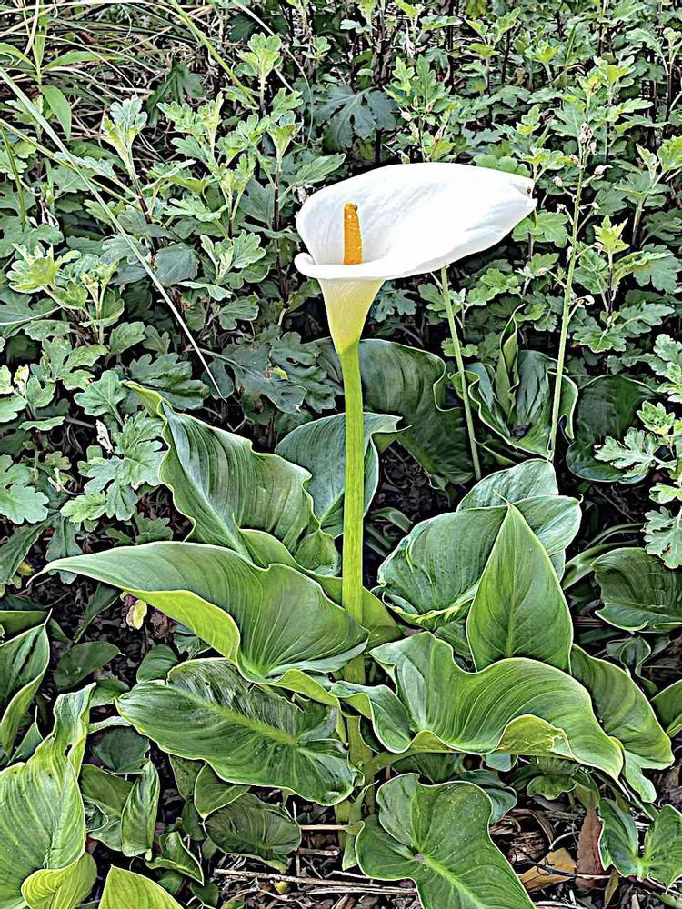 ・カラー<オランダカイウ<阿蘭陀海芋>>(サトイモ科 オランダカイワ属)