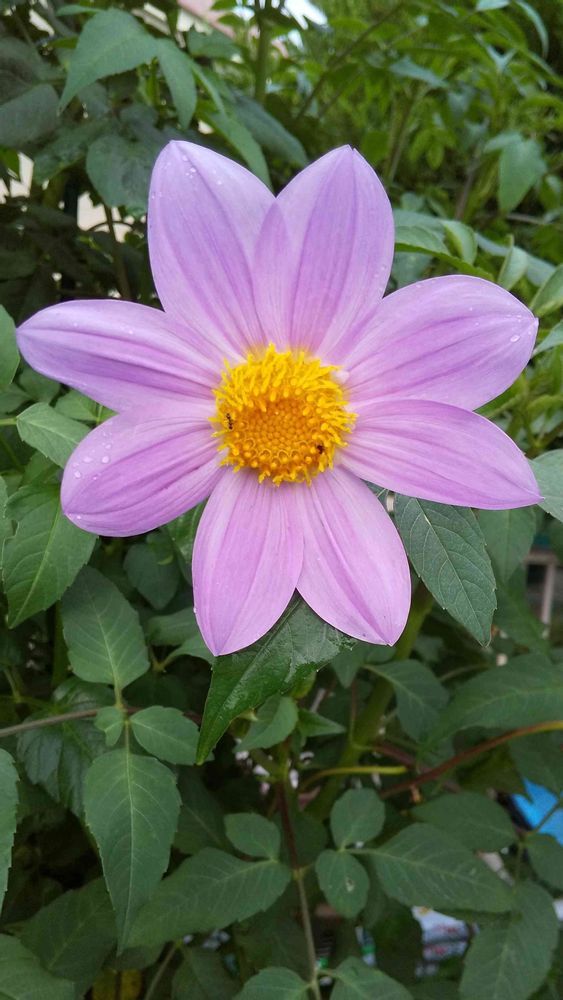 夕暮れ時、雨に濡れる「皇帝ダリア一重咲き」をパチリ!📸🌸🌿😊😄🤗👌