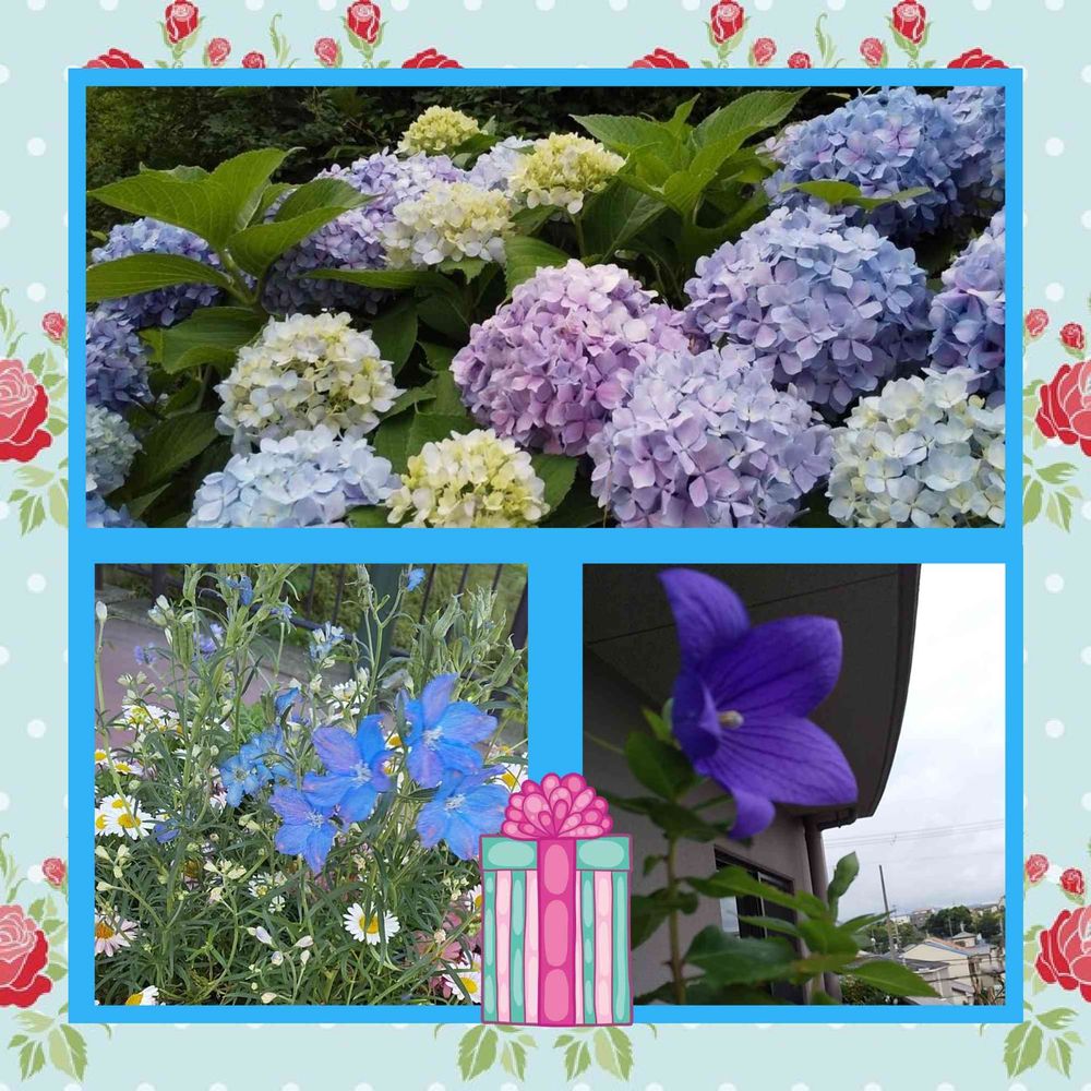 七変化中の美しい紫陽花…🩵💜🩷🤍💙と…⬆️