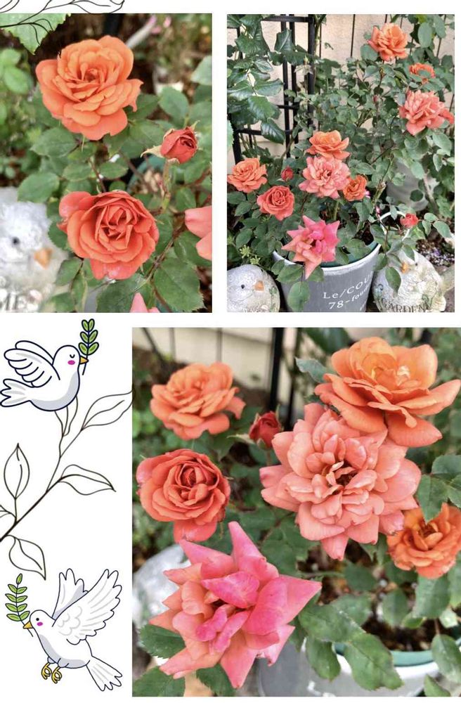 テディベアは咲き始めは左上のような巻き巻きで咲き進むと下の写真のように変化して行くミニバラさんです🧡🤎🧡最後の方の花色はオレンジにピンクが混ざったり花形も変化します。本当は変わらないで欲しいけど😅🐻