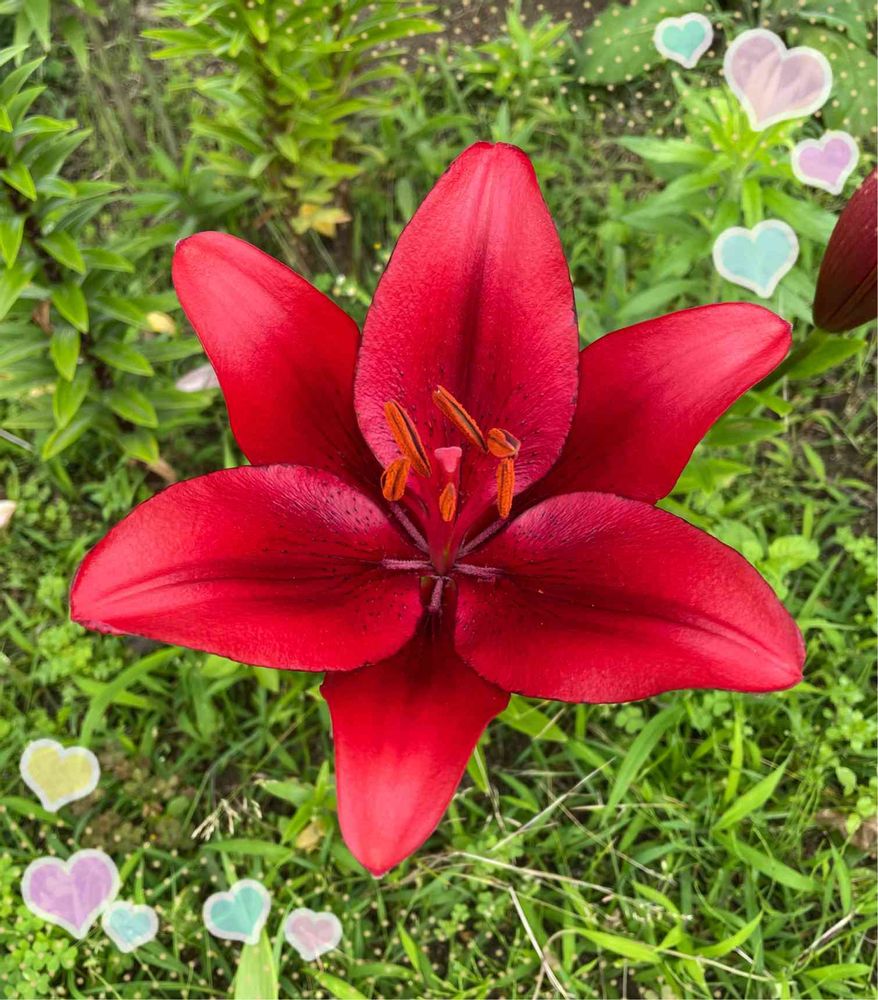職場の真っ赤な百合ちゃんが咲きました❤️♬キレイどわわ〜✨😍