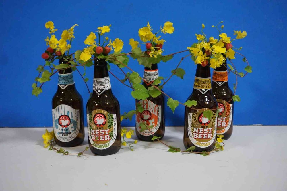 今日も、子供から、父の日に贈られたビール瓶を使って、ビール瓶の置き方を変えたらこうなりました。