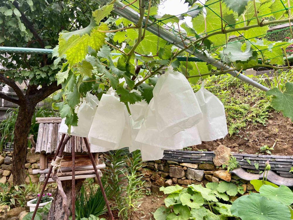 先日の休み、ブドウ(ピォーネ🍇)の袋掛けを行いました💪