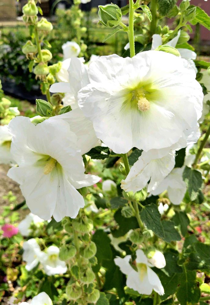 お出かけ先,タチアオイ,白い花の投稿画像