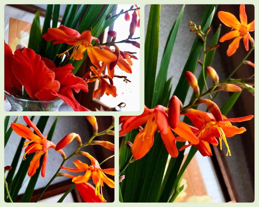 クロコスミヤ(ヒメオウギズイセン)とグラジオラスです🤗💗
