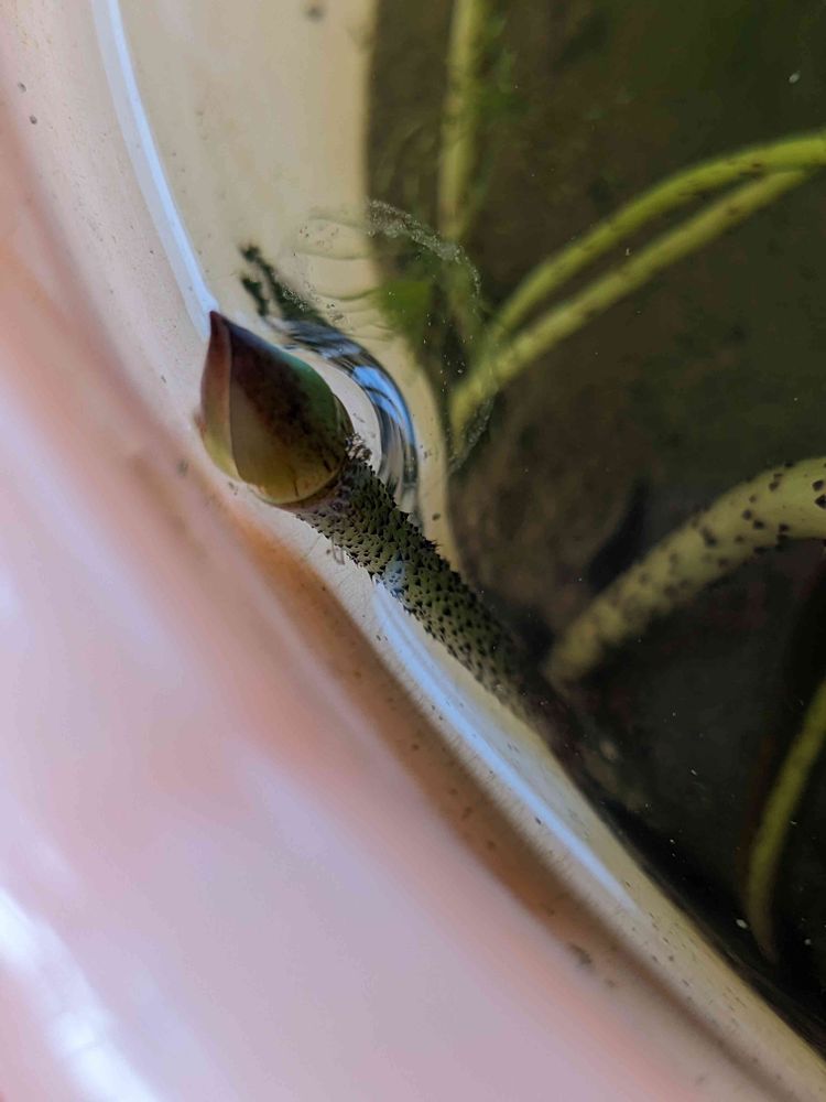 バケツの中のぞきこんでたら、まだ水の中ですが…