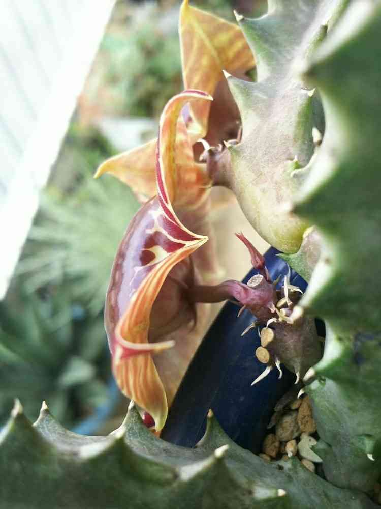 このアルビフローラは臭いませんが、ガガイモ科のお花は、腐敗臭のするものが多いんです。
