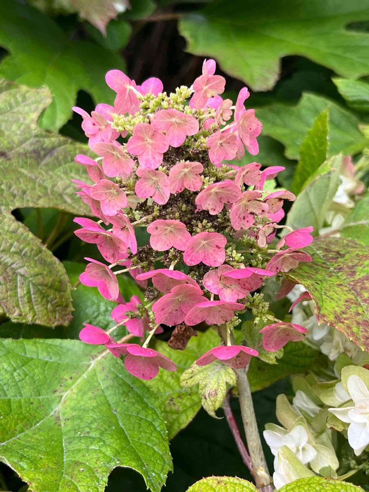 今晩は ~。こんな色のカシワバアジサイもあるのですね。初めて。。
