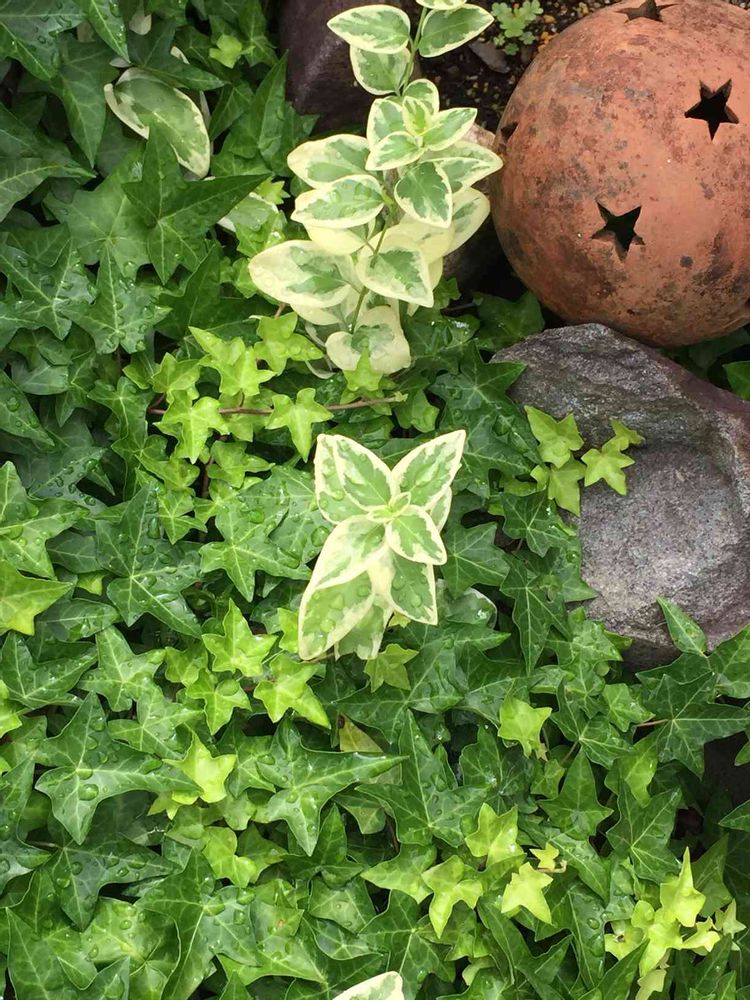 我が家のグランドカバーは、元気もりもりのアイビーと、先日、GSにて名前を知った、ツルニチニチソウ♡