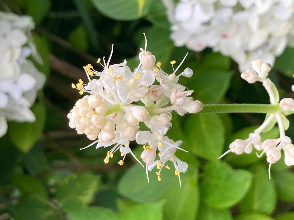 おはようございます😃ヤブミョウガ🤍放ったらかしガーデンにて。白いアジサイの近くで咲き始めました‼️夏本番が近いことを教えてくれますね👍😃🎶