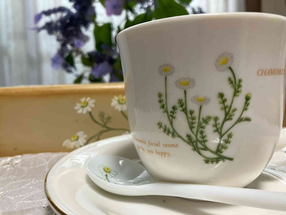 かわいいカップでいただくカモミールティー🌿✨