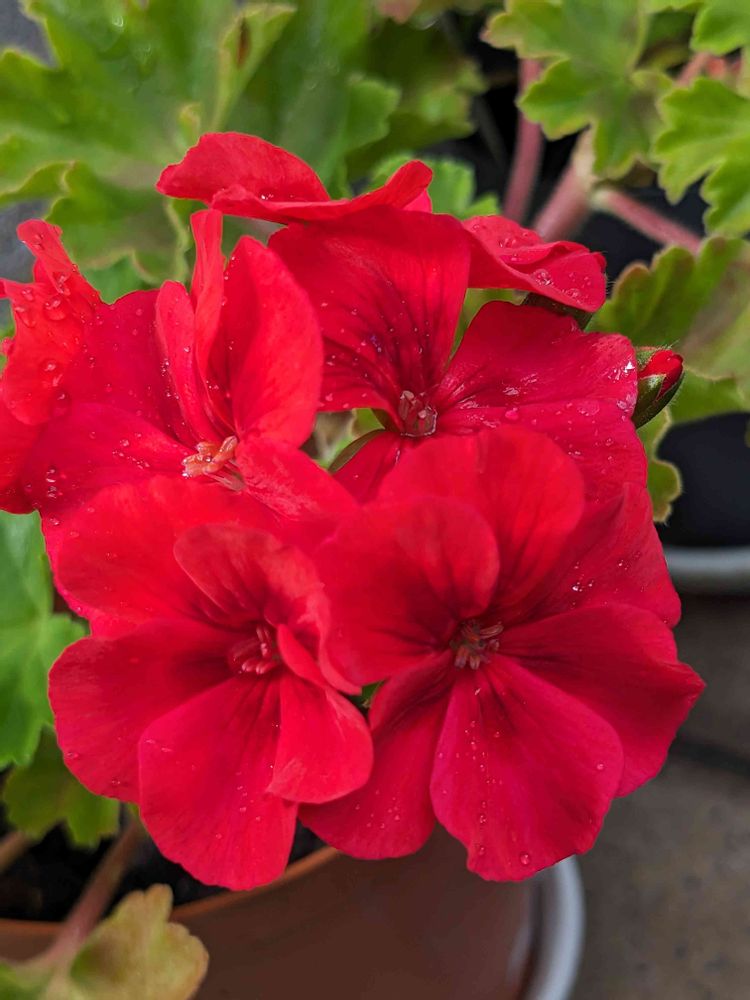 最近は進化したゼラニウム多いけど、普通のゼラニウム、かわいいです。白、ピンク、赤と、3色揃えてますよ。