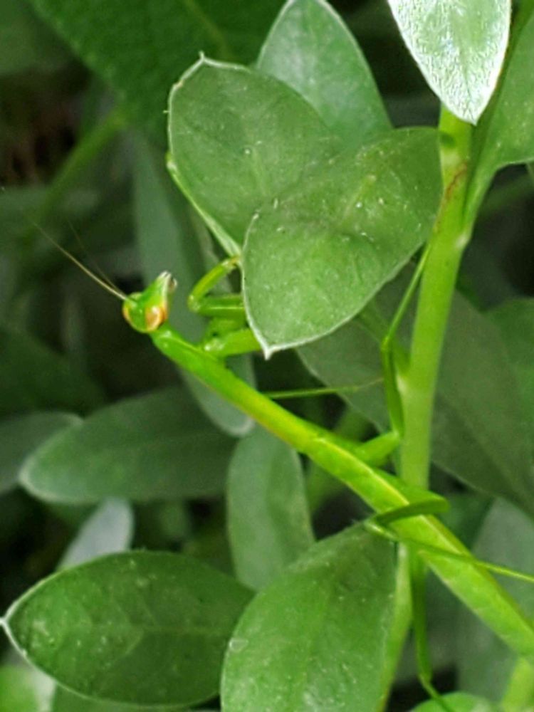 先程、投稿した花のところに😊カマキリ元気に大きくなってね!との思いです。