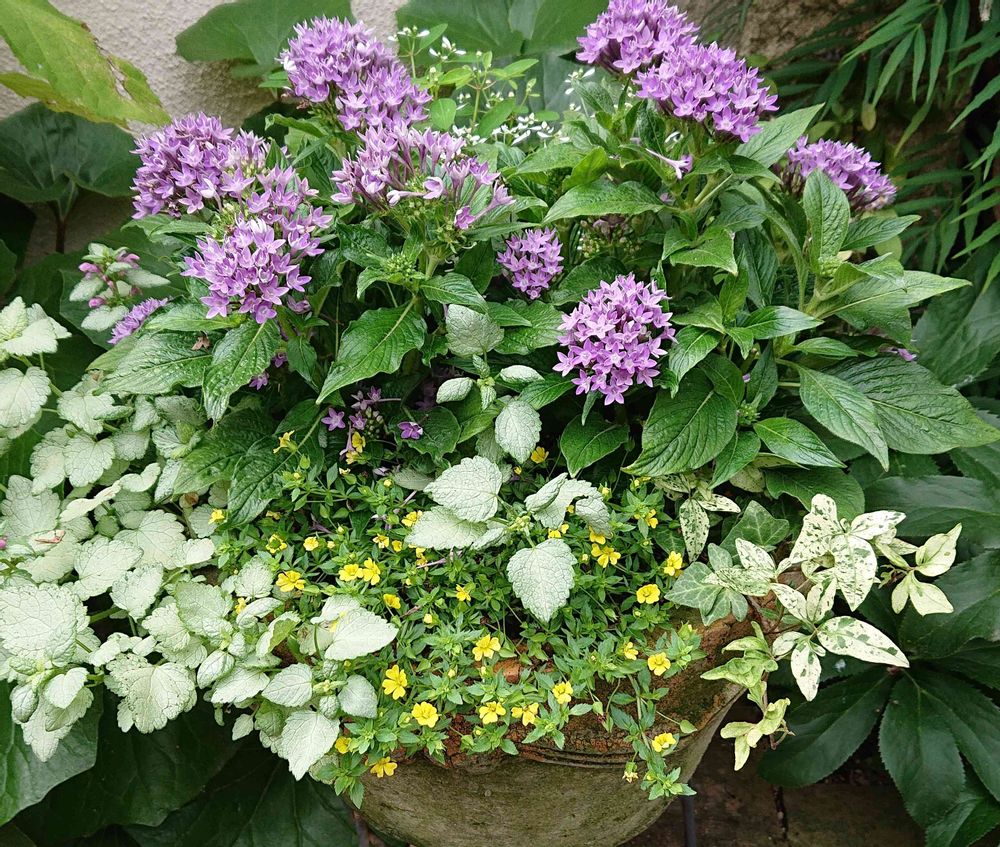 少し前に楕円形の鉢に植え付けた夏の寄せ植え🌿