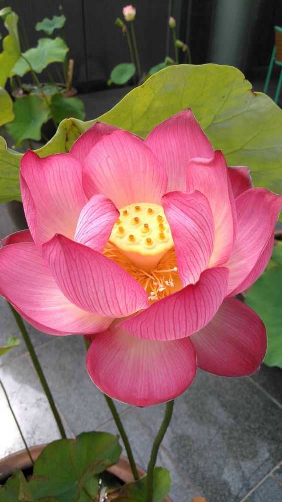 市役所に行ったら、入り口に毎年恒例の蓮の鉢植えが並んでいました💕
