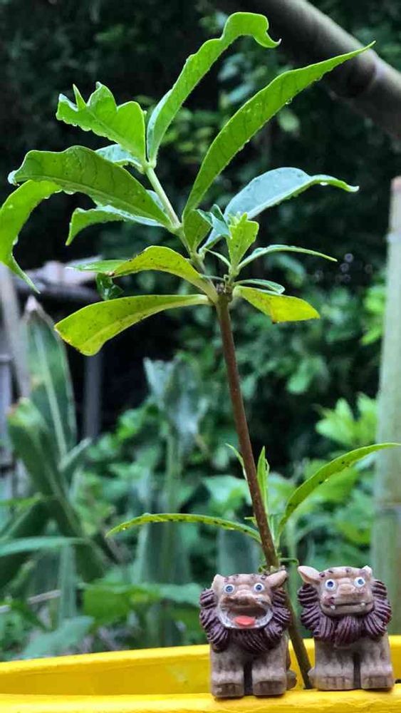 シーサー祭り参加です。まだ咲かないアリアケカズラ🌼と帰宅後📸。