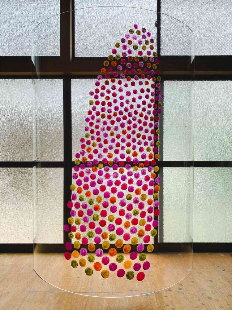 アンスリウムの仏炎苞からのインスパイアで、高さ2mのアール型アクリル板に描きました✨✨