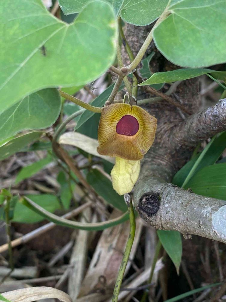 日本のアリストロキア、世界中で奇妙な花を咲かせ、日本では昔からジャコウアゲハの食草ですが、今や、放蝶された大陸産ホソオチョウの食草でもありますね