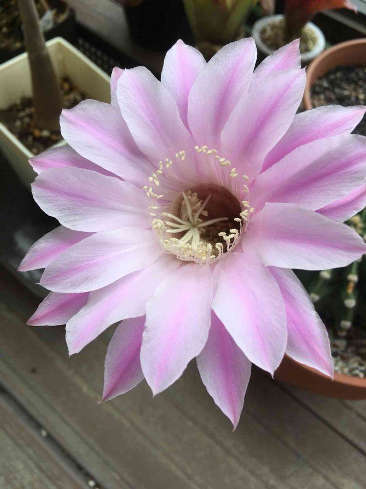 普通の棘無し短毛丸はエキノプシスだから一晩で花が終わるけど、これはロビプシスだから二晩咲いてくれます。