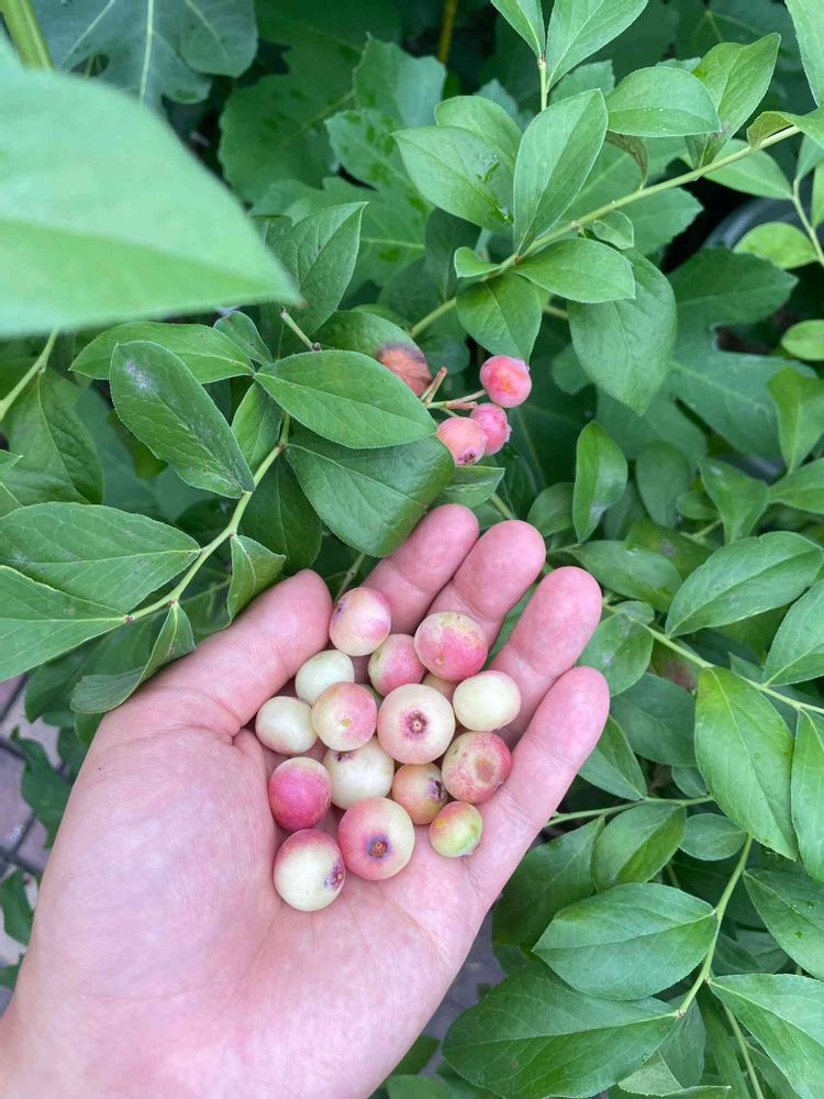 この品種は同じくピンクのブルーベリーのピンクレモネードより大粒で収量も安定しますが、完熟タイミングが分かりにくいのが玉に瑕