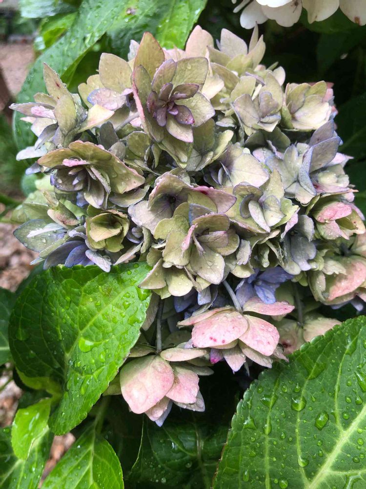 アナベルは冬でも良いから、グリーン色になるまで待ってるけど、雨で濡れて花がぐったり倒れてね😅
