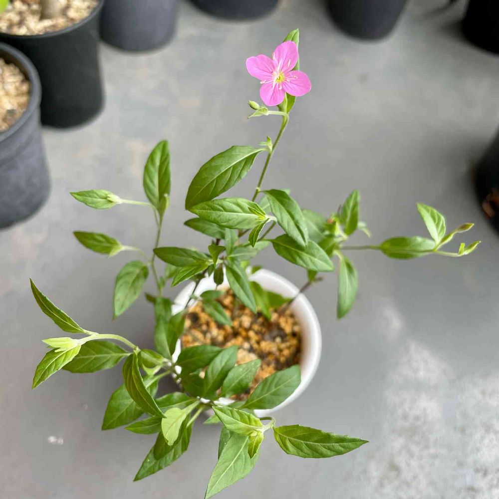雑草に花が咲いた。調べてみるとユウゲショウ(アカバナユウゲショウ)という植物に似ている。