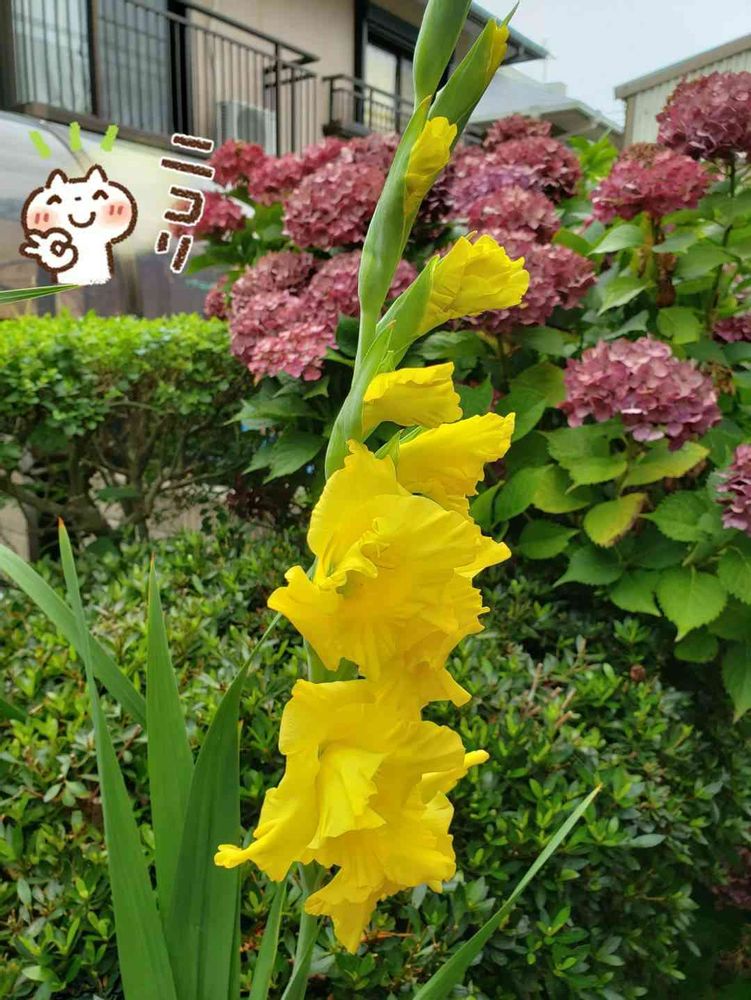 グラジオラスの黄色💛がさいでした、雨の止みまに、パチリです。🤗