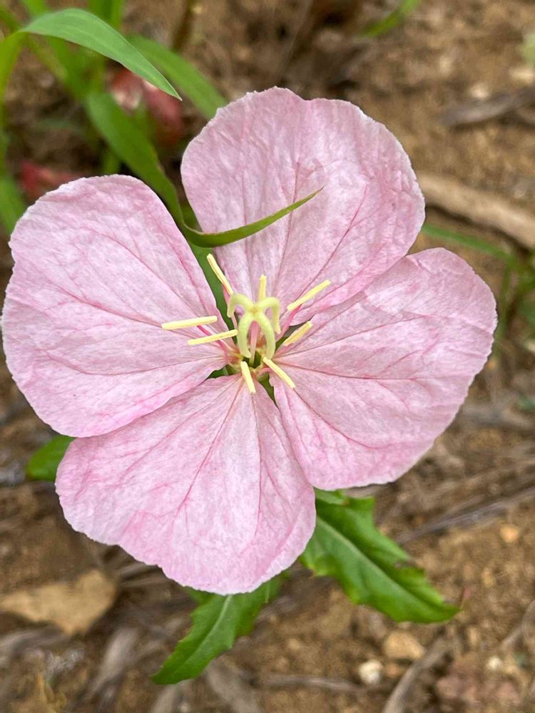 咲夜の月見草、朝8時半にまだ花びらが開いたままでピンク色に💕