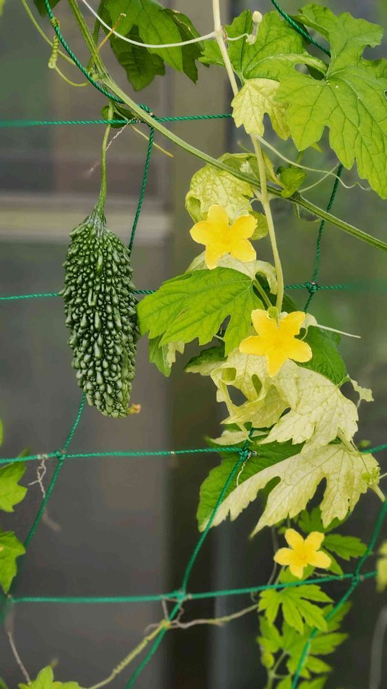 斑入りの葉っぱ、まだまだきれいです。斑入りのゴーヤではなかった😄😄