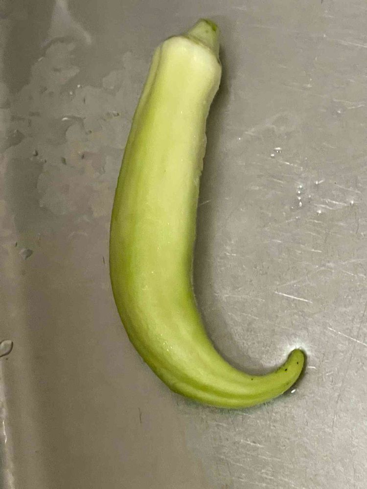 白オクラはネバネバの成分が多いのですが、一本目は長くなるまで待ちすぎて硬くなってしまいあまり食べられませんでした