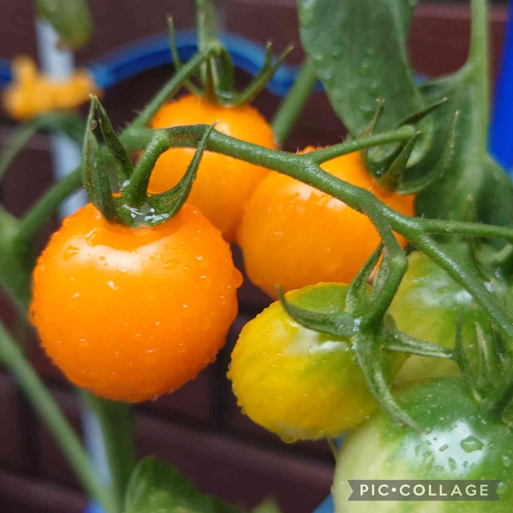 今朝はすごいカミナリ⚡で目が覚めました😣急なカミナリ、怖いですね😣ミニトマト、なかなか赤くならないと思ったら純あまミニトマト(オレンジ)でした〜🤭