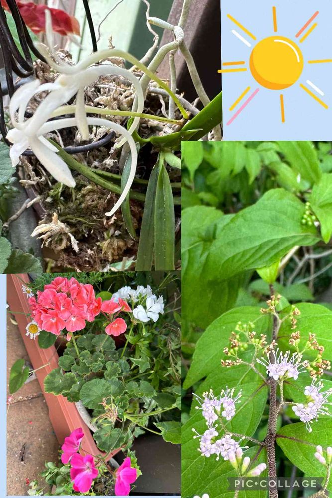 春に咲かなかったフウランが二つ咲きました。セールで買ったゼラニウムも赤、白、ピンクと3色揃って咲き、ムラサキシキブも花と一緒に青い実が出来て来ていましたよ。紫になるのももうすぐですね。