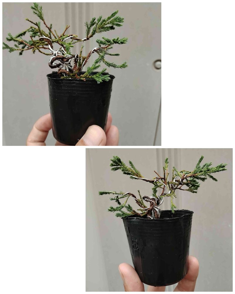 松柏などは曲げやすいですし、細いうちなら、結構グネグネイケます。