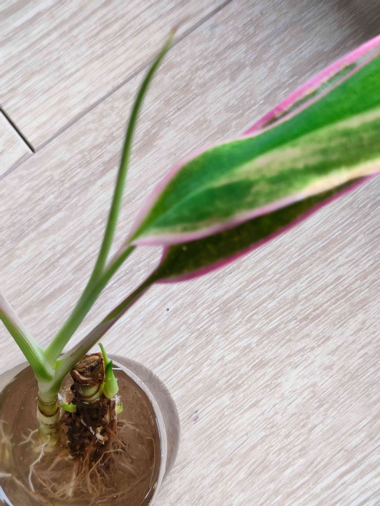 ミニ株を買って植え替えてからずーっと調子が悪く退色しだしたので😥チョッキンして水差しへ移行。