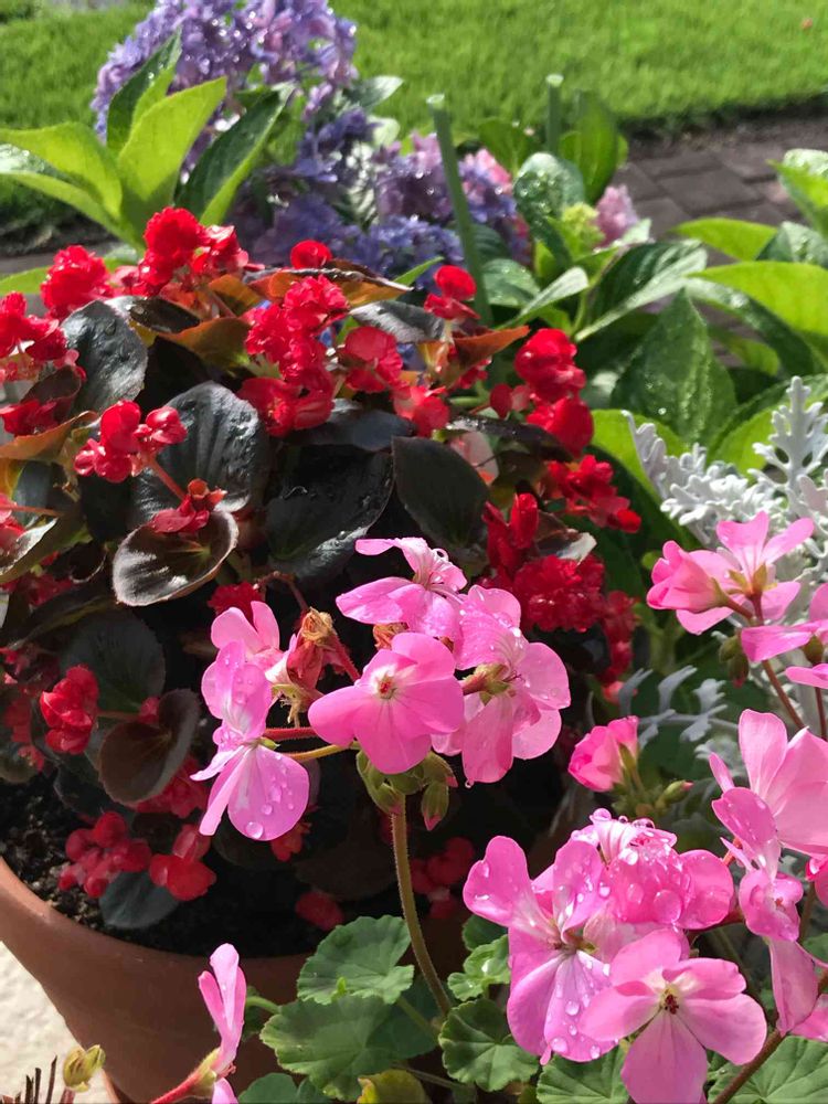 素敵な寄せ植えだねー😍うちの地植えベゴニア、暑さでヘロヘロになってます💦プランターの方がよかったのかもなぁ😅
