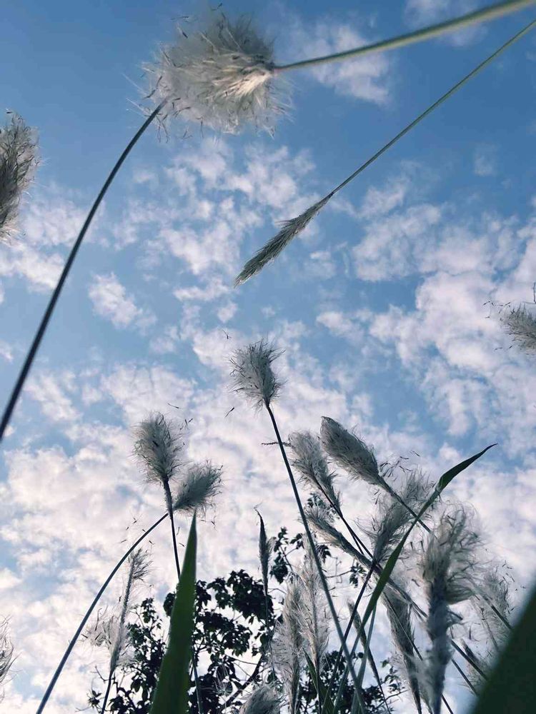 欲張りなので、流れる雲とすすぅーと伸びる茎先にチガヤの綿毛を入れてパチリでした😆