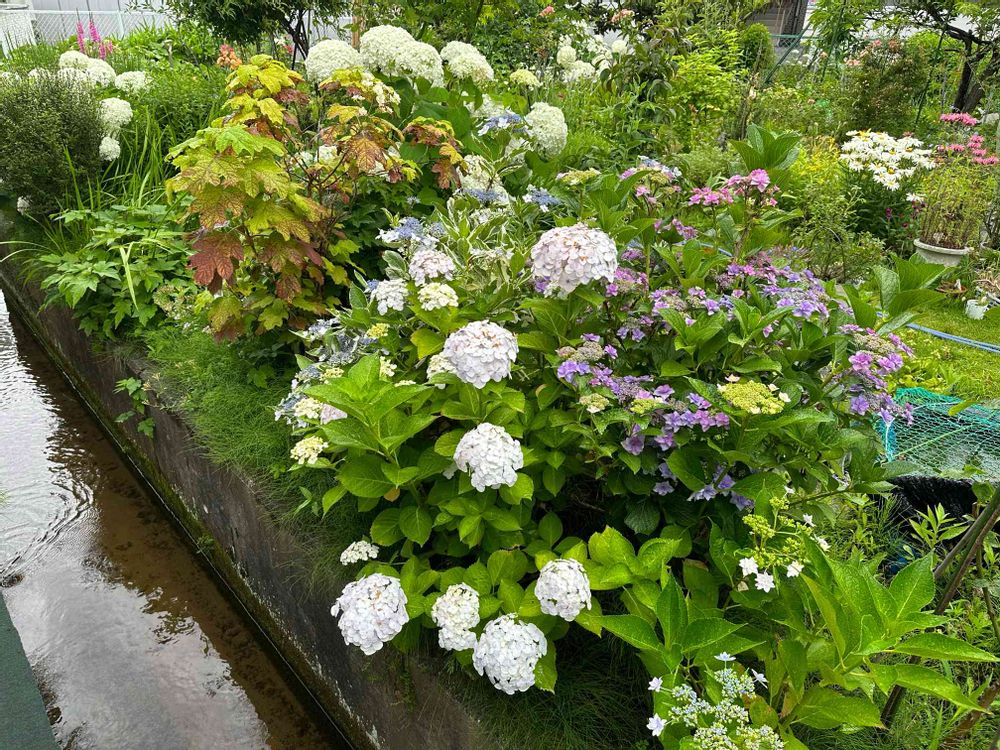 今朝の水路端の紫陽花、昨夜の☔️で生き生きとしています☺️